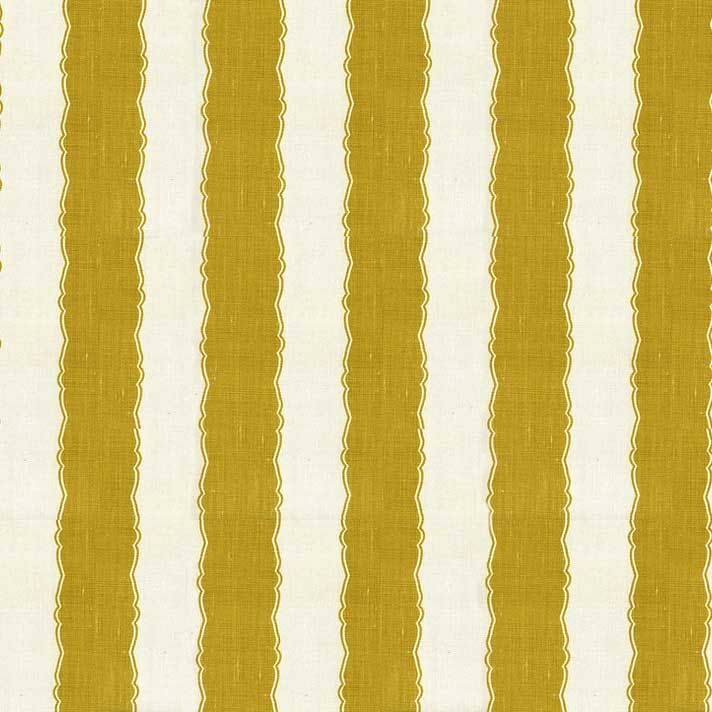 An unusual balustrade striped linen fabric in golden yellow and off white. A smart alternative to a classic striped fabric.
