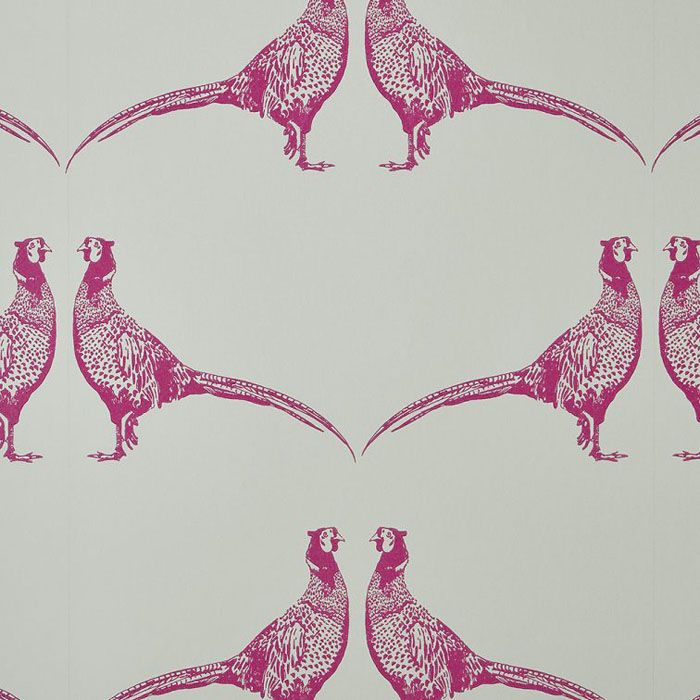 An important symbol of our traditional British countryside, the majestic pheasant printed in pink across a dark cream background. Perfect for a rural retreat or a funky city space.