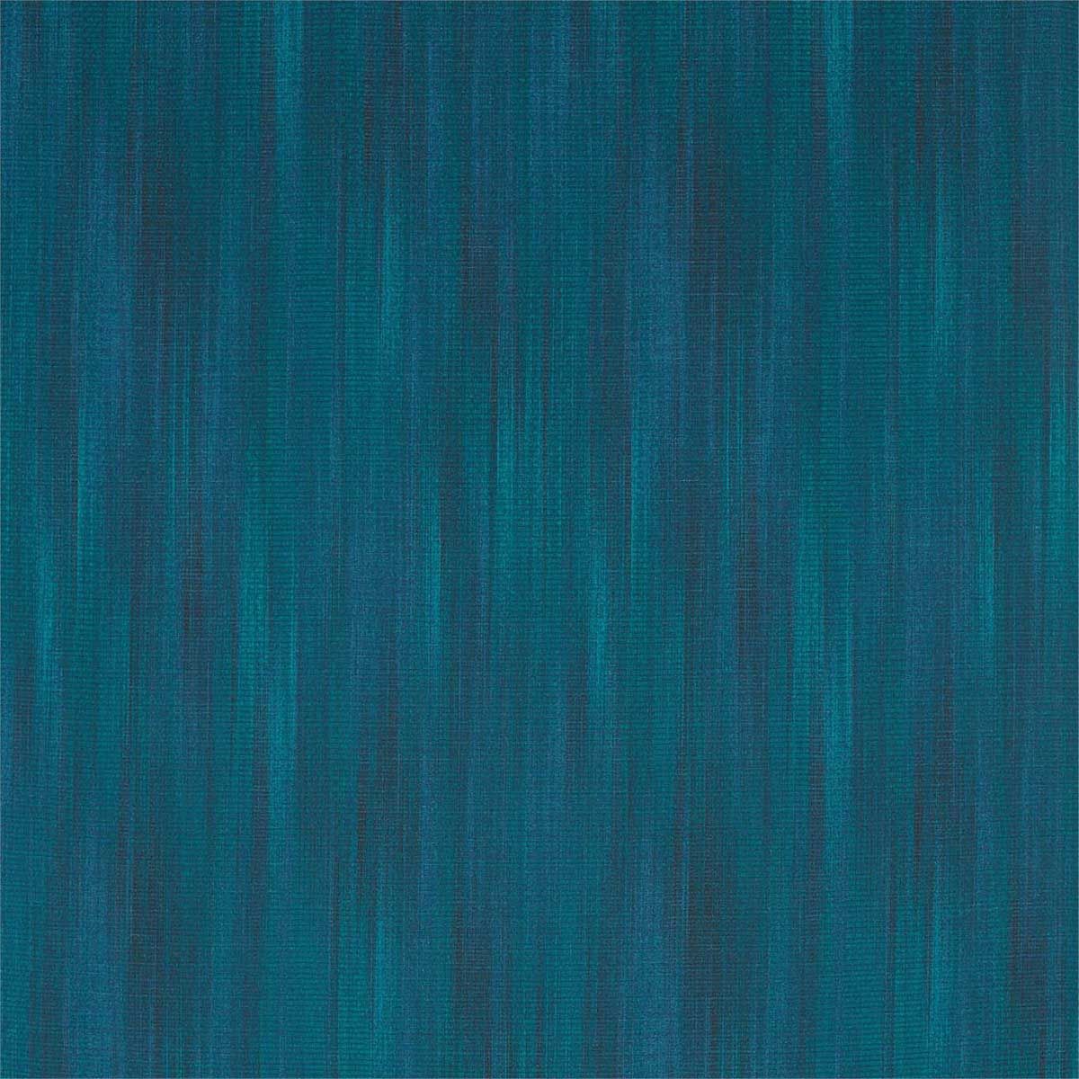 A dark blue and teal fabric space-dyed and woven to create an abstract ikat pattern. It's ideal for tying a contemporary colour scheme together.