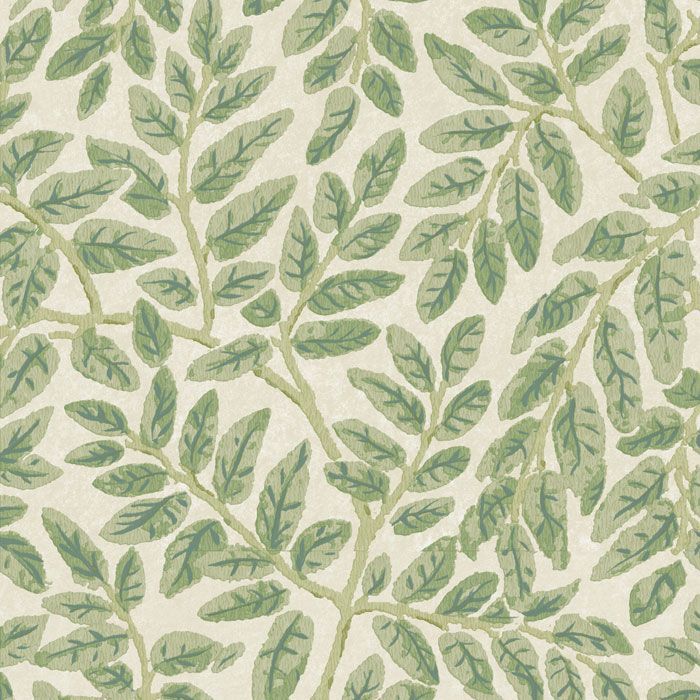 A pretty all over leaf design printed with a painterly effect giving it a rustic, soft look. A timeless wallpaper in green on a cream base, ideal for a country cottage interior or using amongst bolder patterns.