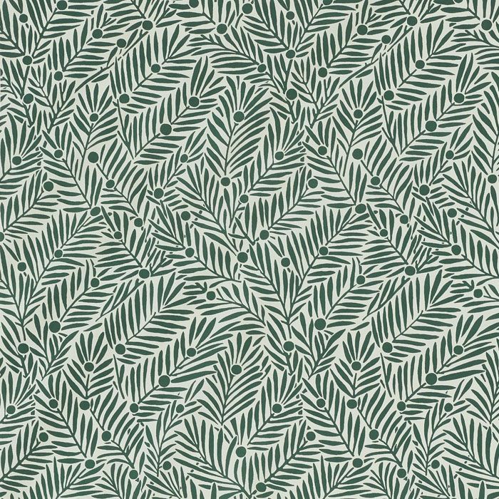 A classic two-toned design, featuring the branches of a Yew tree and its berries, known as arils in teal blue on a pale blue ground. This fabric is an excellent choice for coordinating with louder patterns and colours or simply style alone to emphasise the intricate design.